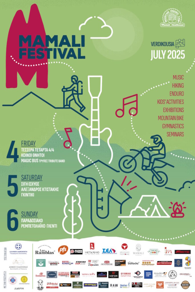 Το πολυαναμενόμενο Mamali Festival επιστρέφει και φέτος, υποσχόμενο ένα αξέχαστο τριήμερο γεμάτο φύση, περιπέτεια, πολιτισμό και μουσική! Από την Παρασκευή 4 έως και την Κυριακή 6 Ιουλίου 2025, η Μαμαλή Βερδικούσιας Λάρισας θα μεταμορφωθεί σε έναν ιδανικό προορισμό για όλους τους λάτρεις του enduro, της υπαίθρου και των πολιτιστικών δράσεων.